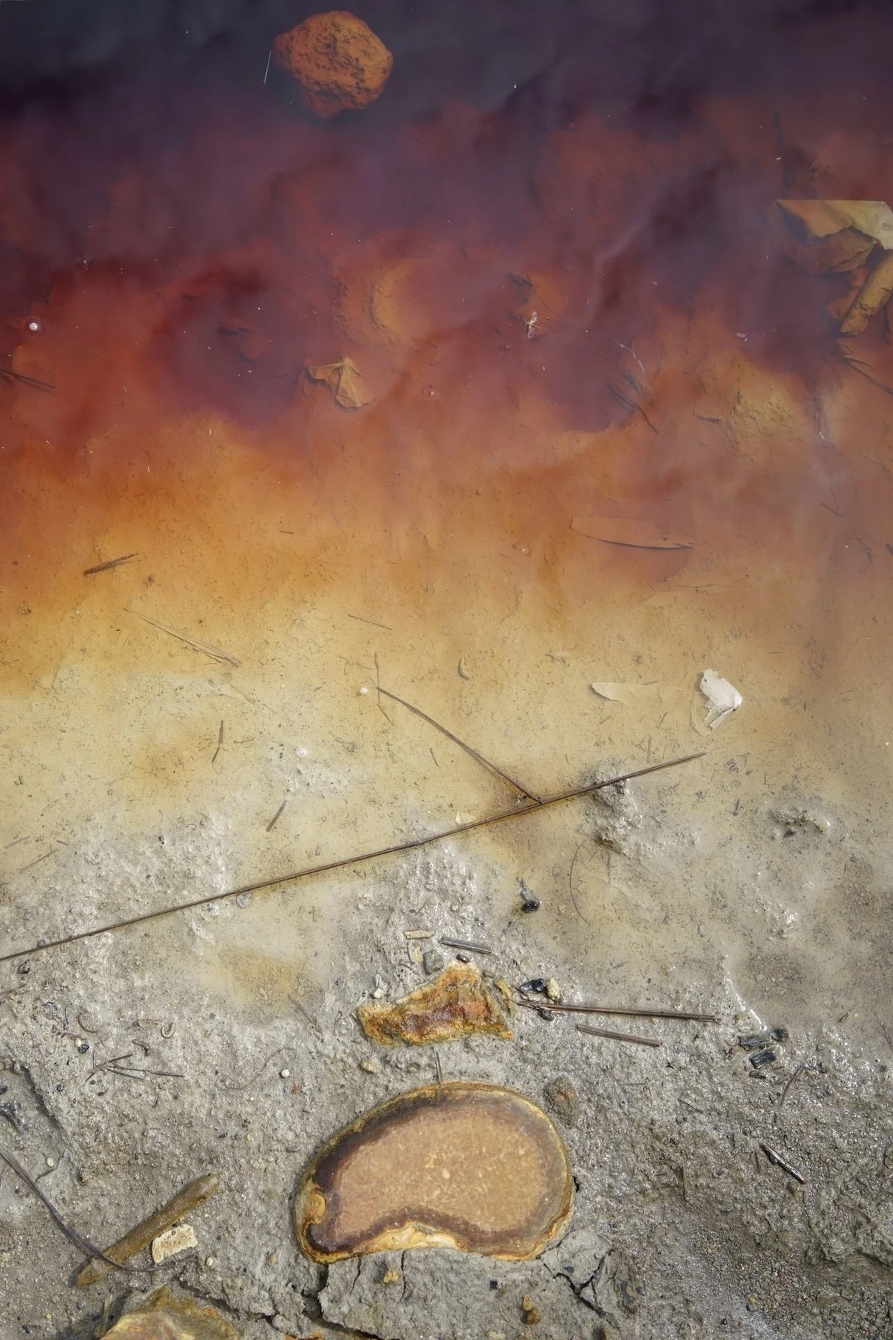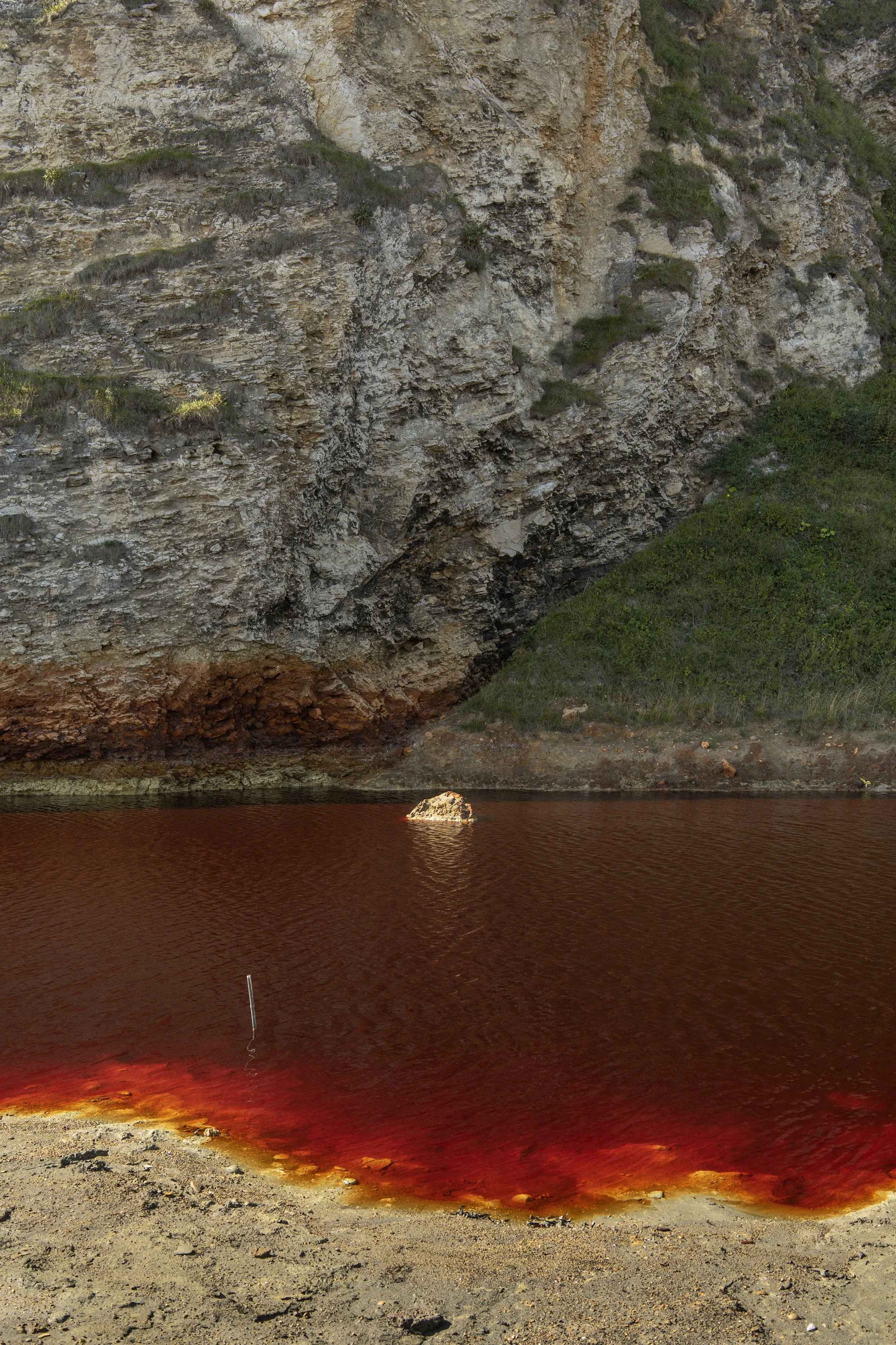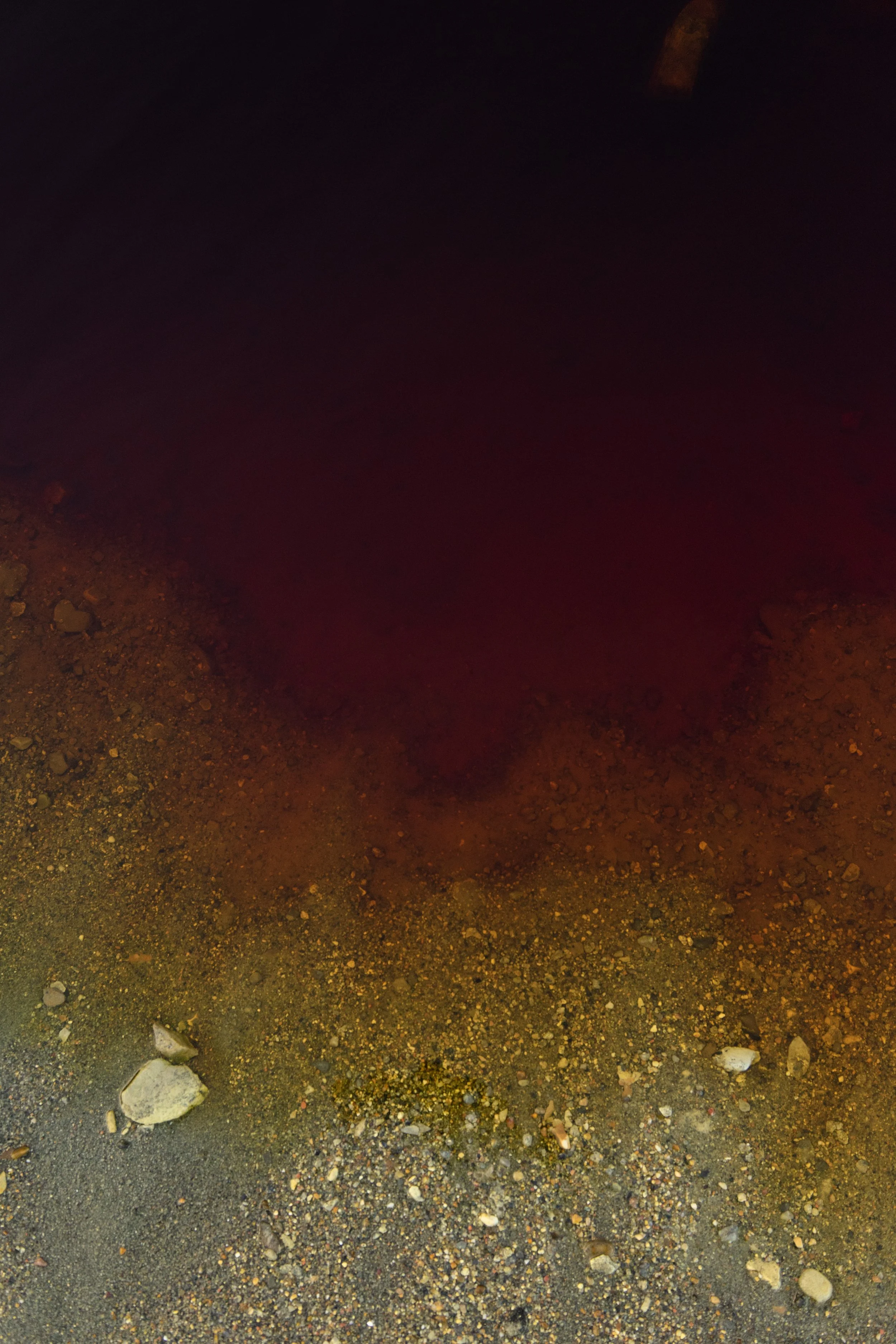 Previously a site used for dumping industrial waste, recent years have seen a push to clean up Blast Beach, near Seaham, County Durham. Yet, there still remains some of the other-worldliness that made it a prime location for David Fincher to film some of the open scenes of Alien 3. The blood red pools of water, dyed by the iron oxides that remain in the earth, turn fire-like as they fade to orange and then yellow at their shallow edges. The colour of the water, acts as a form of aposematism, reminding us that it is not safe. Up close images of the pools resemble crime scene photos. A metaphor, perhaps, for the environmental crimes inflicted upon the land. Even the name ‘Blast Beach’, referencing the blast furnaces which once stood there, sounds like a warning.
